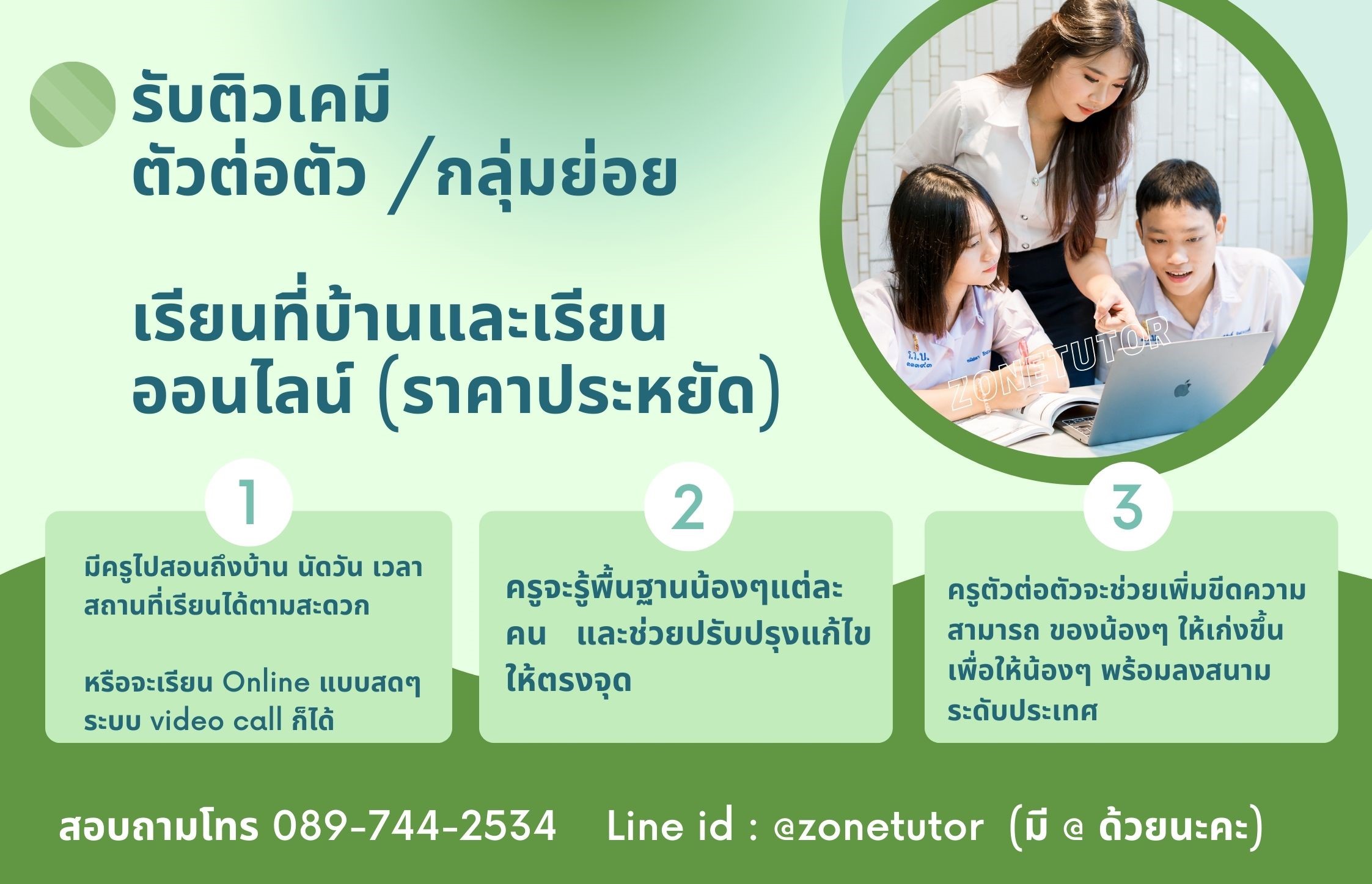 สอบถาม สมัครเรียนพิเศษเคมีได้ที่ 089-744-2534 หรือไลน์แอด line : @zonetutor (มี @ นำหน้าด้วยนะคะ)